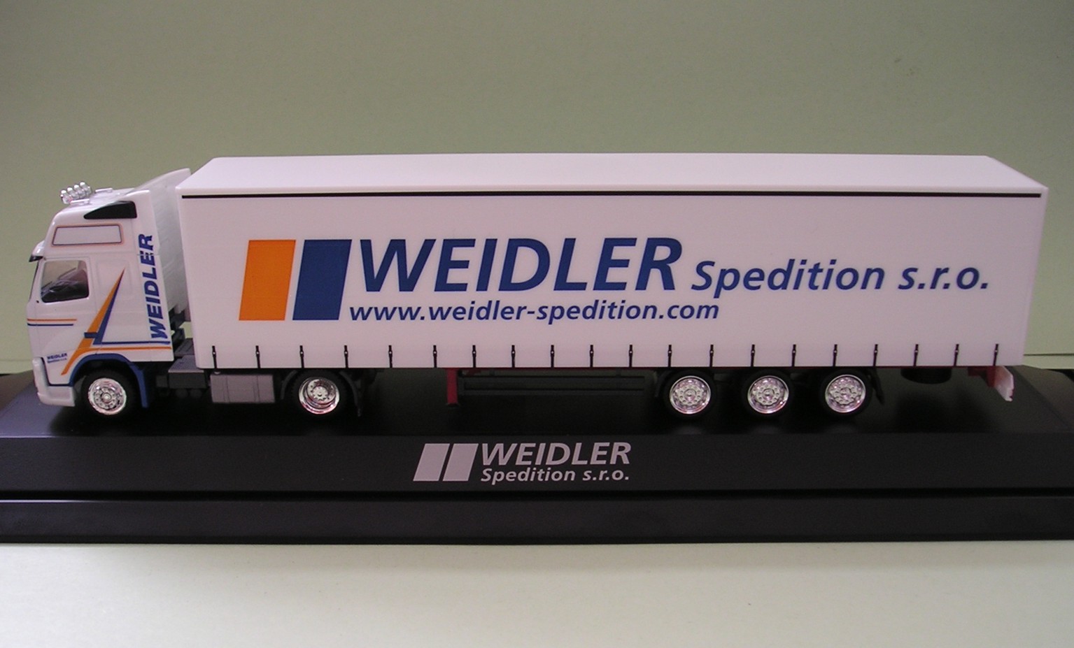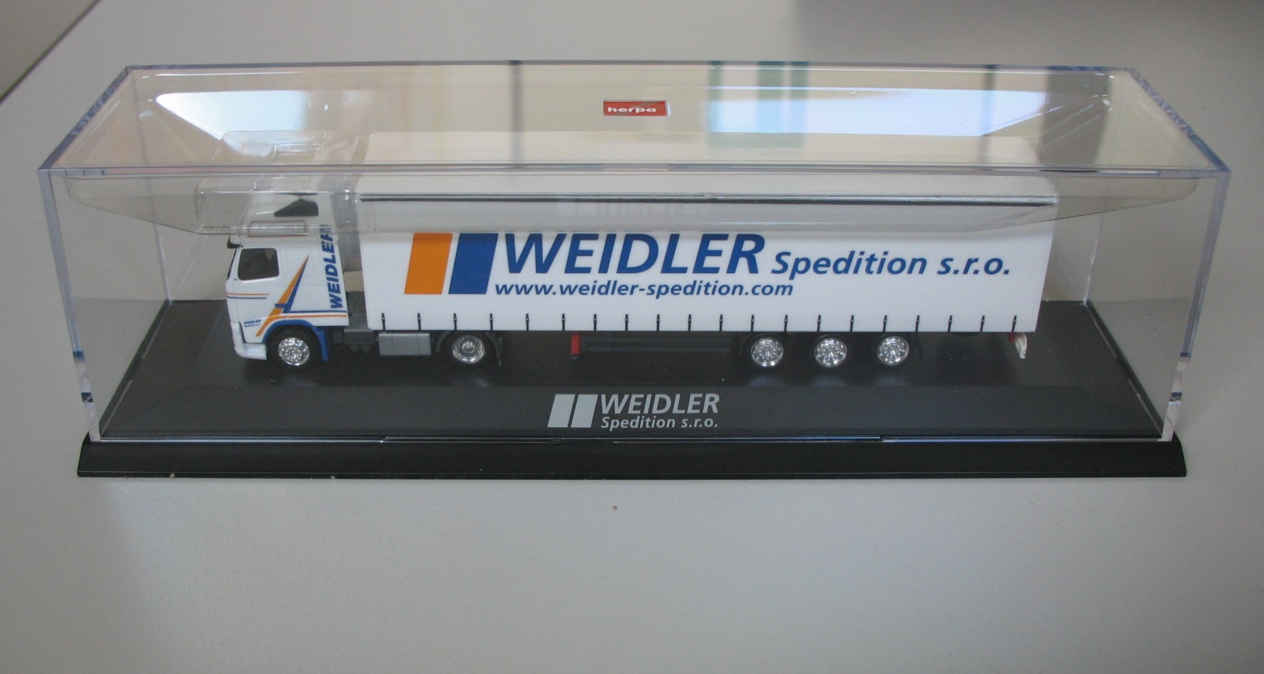 Mini-Trucks in zwei Ausführungsvariantenim Faltkartonmit KlarsichtfensterVitrine mit transparenter Kunststoffabdeckung
